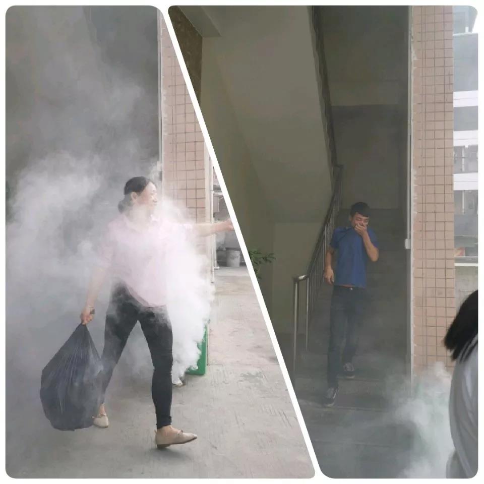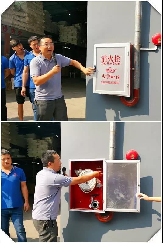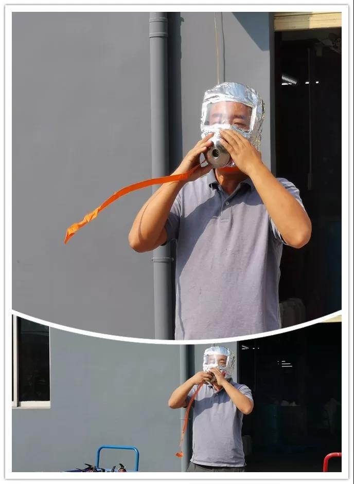 搶答完成后,負責(zé)公司消防器材維護的大劉,教大家如何正確使用滅火器、防火面罩及消防栓。