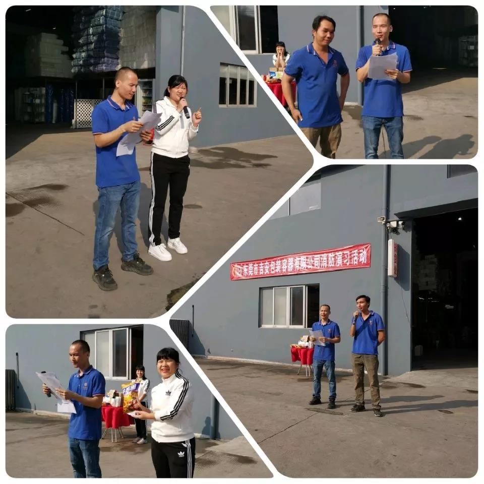 11月24日上午9:00,“東莞市吉安包裝容器有限公司消防演習(xí)活動”正式開始!隨著警報鈴響起,宿舍樓的員工及家屬、辦公樓和一二區(qū)倉庫的同事們,都快速地疏散到安全區(qū)域。