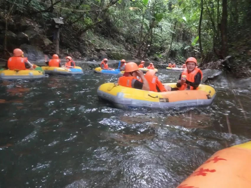 接下來(lái)等著我們的是大家期待已久的項(xiàng)目---漂流。古龍峽國(guó)際漂流賽道,全長(zhǎng)6.1公里,高低落差378米,最高時(shí)速可達(dá)72km。在驚魂未定之際又戛然而止,好怕怕!