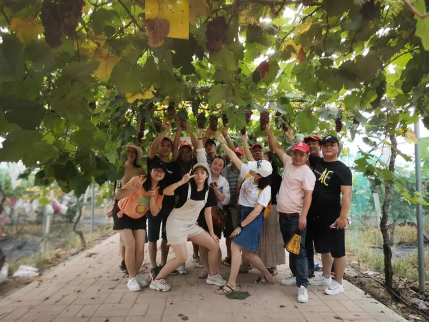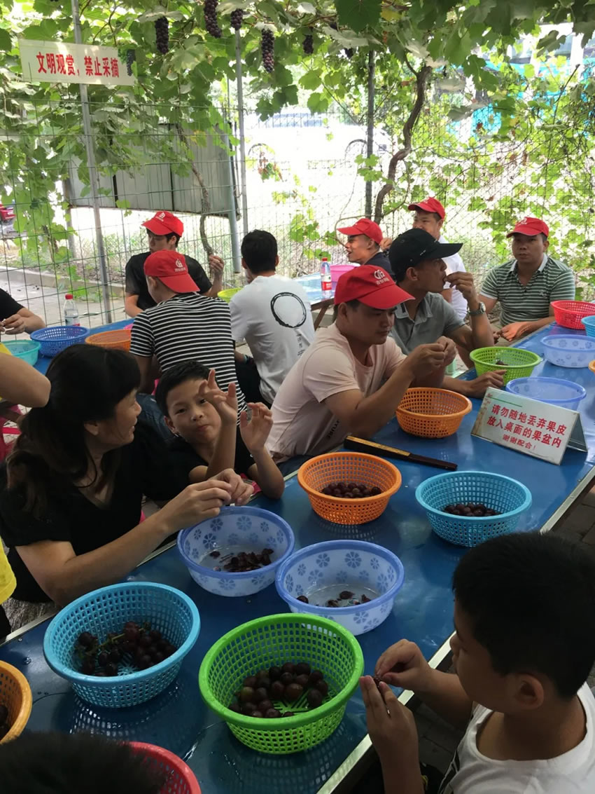享用完酒店的早餐后,我們一行來(lái)到【醇葡鄉(xiāng)村.葡萄】農(nóng)家果園,該果園是目前清遠(yuǎn)最大的高科技葡萄種植園。品嘗了果大味甜的新鮮葡萄后,開(kāi)心的眾人還在果園里進(jìn)行了舞蹈PK。各組組長(zhǎng)帶領(lǐng)組員就公司平日里練習(xí)的舞蹈進(jìn)行比賽。果園老板都被大家的舞姿吸引,詢(xún)問(wèn)“你們是哪里的公司,怎么如此具有活力?”“我們是吉安容器的團(tuán)隊(duì)”大家自豪響亮地回應(yīng)道,讓人感動(dòng)!