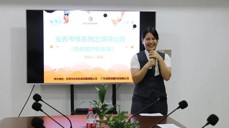 吉安容器業(yè)務(wù)部10月份展開了一場(chǎng)別開生面的“演講比賽”,全體業(yè)務(wù)部成員將圍繞“我和客戶的故事”為主題,各自上臺(tái)分享自己平時(shí)在與客戶溝通過程中的故事,通過演講的方式分享出來(lái)。上臺(tái)演講的氣氛和平時(shí)說(shuō)話的區(qū)別還是比較大的,對(duì)于我們來(lái)說(shuō),是一個(gè)很大的挑戰(zhàn)和突破。有的同事通過這次演講克服自己上臺(tái)障礙,邁出了勇敢的第一步,有的同事提升了自己的表達(dá)能力,每個(gè)人都從本次活動(dòng)中得到了不同程度的提升,同時(shí)在大家分享的故事和主題中學(xué)習(xí)到很多關(guān)于如何跟客戶交流溝通的知識(shí)在提升業(yè)務(wù)能力方面也得到一次很好的學(xué)習(xí)機(jī)會(huì),下面為您分享本次活動(dòng)中各位參賽選手的論點(diǎn)小結(jié),一同學(xué)習(xí),共同進(jìn)步!