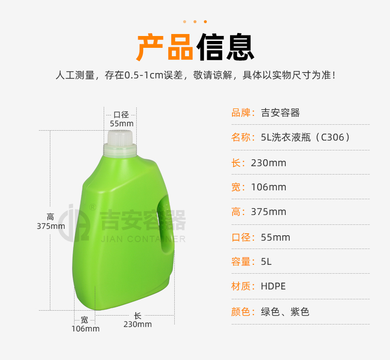 東莞市吉安包裝容器有限公司創(chuàng)立于2000年8月1日,是中國知名品牌企業(yè)。已通過ISO 9001質(zhì)量管理體系資質(zhì)認(rèn)證,加入了中國中空協(xié)會,并獲得《中國知名品牌》,《國家標(biāo)準(zhǔn)合格產(chǎn)品》,《全國重合同守信用AAA級企業(yè)》,《質(zhì)量.服務(wù).誠信AAA企業(yè)》等榮譽(yù)稱號。根據(jù)材質(zhì)的不同,我們的產(chǎn)品分為塑料容器、鐵質(zhì)容器、鋁材容器、玻璃容器、紙質(zhì)容器等五大類。按產(chǎn)品的名稱分為塑料桶、塑料瓶、包裝桶、涂料桶、機(jī)油桶、油脂桶、化工罐、膠水瓶、鐵桶、鐵罐、鋁瓶、鋁罐、阻隔瓶、高阻隔瓶等,容量從3ML至1000L多種規(guī)格,多種款式。適合包裝的產(chǎn)品包括:化學(xué)試劑、化工原料、化工助劑、飼料添加劑、油墨、油漆、樹脂農(nóng)藥、日用化學(xué)品、聚氨脂、膠粘劑,廣泛應(yīng)用于化工、建筑、食品、醫(yī)療、生物等各領(lǐng)域。