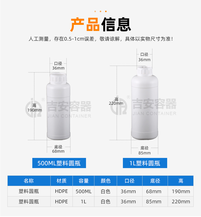 | 品名:500ML/1L圓塑料瓶(E176) | |