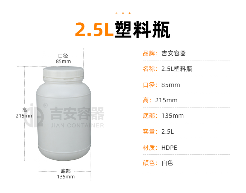 東莞市吉安包裝容器有限公司創(chuàng)立于2000年8月1日,是中國知名品牌企業(yè)。已通過ISO 9001質(zhì)量管理體系資質(zhì)認(rèn)證,加入了中國中空協(xié)會,并獲得《中國知名品牌》,《國家標(biāo)準(zhǔn)合格產(chǎn)品》,《全國重合同守信用AAA級企業(yè)》,《質(zhì)量.服務(wù).誠信AAA企業(yè)》等榮譽(yù)稱號。根據(jù)材質(zhì)的不同,我們的產(chǎn)品分為塑料容器、鐵質(zhì)容器、鋁材容器、玻璃容器、紙質(zhì)容器等五大類。按產(chǎn)品的名稱分為塑料桶、塑料瓶、包裝桶、涂料桶、機(jī)油桶、油脂桶、化工罐、膠水瓶、鐵桶、鐵罐、鋁瓶、鋁罐、阻隔瓶、高阻隔瓶等,容量從3ML至1000L多種規(guī)格,多種款式。適合包裝的產(chǎn)品包括:化學(xué)試劑、化工原料、化工助劑、飼料添加劑、油墨、油漆、樹脂農(nóng)藥、日用化學(xué)品、聚氨脂、膠粘劑,廣泛應(yīng)用于化工、建筑、食品、醫(yī)療、生物等各領(lǐng)域。