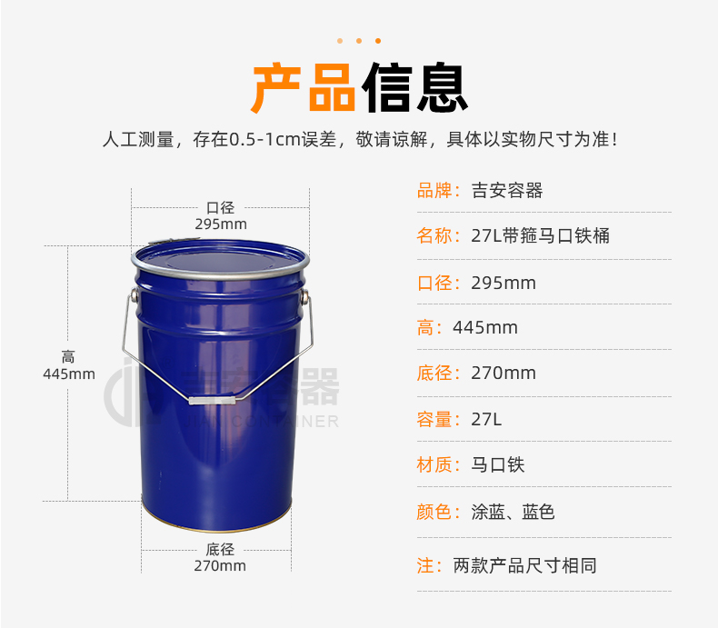 東莞市吉安包裝容器有限公司創(chuàng)立于2000年8月1日,是中國知名品牌企業(yè)。已通過ISO 9001質(zhì)量管理體系資質(zhì)認證,加入了中國中空協(xié)會,并獲得《中國知名品牌》,《國家標(biāo)準(zhǔn)合格產(chǎn)品》,《全國重合同守信用AAA級企業(yè)》,《質(zhì)量.服務(wù).誠信AAA企業(yè)》等榮譽稱號。根據(jù)材質(zhì)的不同,我們的產(chǎn)品分為塑料容器、鐵質(zhì)容器、鋁材容器、玻璃容器、紙質(zhì)容器等五大類。按產(chǎn)品的名稱分為塑料桶、塑料瓶、包裝桶、涂料桶、機油桶、油脂桶、化工罐、膠水瓶、鐵桶、鐵罐、鋁瓶、鋁罐、阻隔瓶、高阻隔瓶等,容量從3ML至1000L多種規(guī)格,多種款式。適合包裝的產(chǎn)品包括:化學(xué)試劑、化工原料、化工助劑、飼料添加劑、油墨、油漆、樹脂農(nóng)藥、日用化學(xué)品、聚氨脂、膠粘劑,廣泛應(yīng)用于化工、建筑、食品、醫(yī)療、生物等各領(lǐng)域。