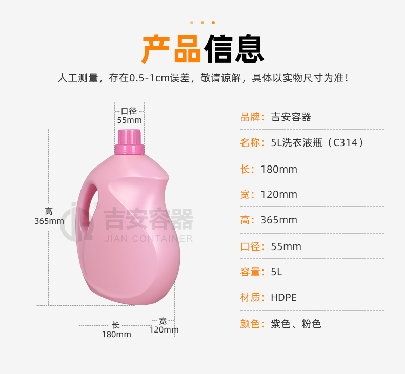 東莞市吉安包裝容器有限公司創(chuàng)立于2000年8月1日,是中國知名品牌企業(yè)。已通過ISO 9001質(zhì)量管理體系資質(zhì)認(rèn)證,加入了中國中空協(xié)會(huì),并獲得《中國知名品牌》,《國家標(biāo)準(zhǔn)合格產(chǎn)品》,《全國重合同守信用AAA級(jí)企業(yè)》,《質(zhì)量.服務(wù).誠信AAA企業(yè)》等榮譽(yù)稱號(hào)。根據(jù)材質(zhì)的不同,我們的產(chǎn)品分為塑料容器、鐵質(zhì)容器、鋁材容器、玻璃容器、紙質(zhì)容器等五大類。按產(chǎn)品的名稱分為塑料桶、塑料瓶、包裝桶、涂料桶、機(jī)油桶、油脂桶、化工罐、膠水瓶、鐵桶、鐵罐、鋁瓶、鋁罐、阻隔瓶、高阻隔瓶等,容量從3ML至1000L多種規(guī)格,多種款式。適合包裝的產(chǎn)品包括:化學(xué)試劑、化工原料、化工助劑、飼料添加劑、油墨、油漆、樹脂農(nóng)藥、日用化學(xué)品、聚氨脂、膠粘劑,廣泛應(yīng)用于化工、建筑、食品、醫(yī)療、生物等各領(lǐng)域。
