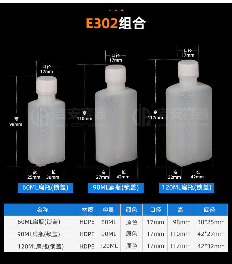 | 品名:30ml/60ml塑料瓶(E301) | |