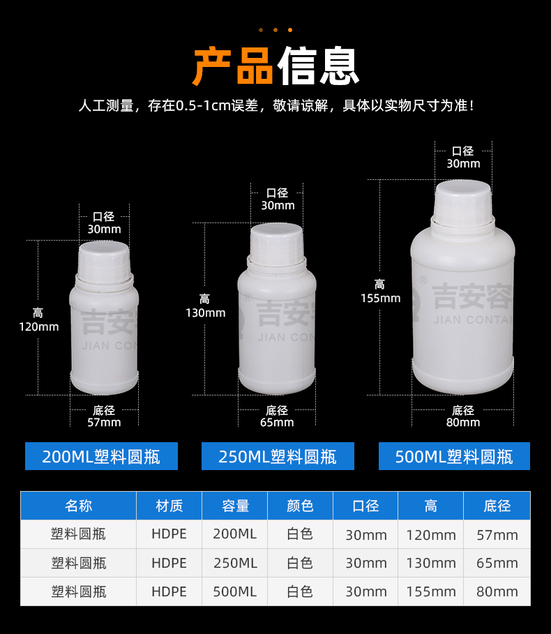 東莞市吉安包裝容器有限公司創(chuàng)立于2000年8月1日,是中國知名品牌企業(yè)。已通過ISO 9001質(zhì)量管理體系資質(zhì)認證,加入了中國中空協(xié)會,并獲得《中國知名品牌》,《國家標準合格產(chǎn)品》,《全國重合同守信用AAA級企業(yè)》,《質(zhì)量.服務(wù).誠信AAA企業(yè)》等榮譽稱號。根據(jù)材質(zhì)的不同,我們的產(chǎn)品分為塑料容器、鐵質(zhì)容器、鋁材容器、玻璃容器、紙質(zhì)容器等五大類。按產(chǎn)品的名稱分為塑料桶、塑料瓶、包裝桶、涂料桶、機油桶、油脂桶、化工罐、膠水瓶、鐵桶、鐵罐、鋁瓶、鋁罐、阻隔瓶、高阻隔瓶等,容量從3ML至1000L多種規(guī)格,多種款式。適合包裝的產(chǎn)品包括:化學(xué)試劑、化工原料、化工助劑、飼料添加劑、油墨、油漆、樹脂農(nóng)藥、日用化學(xué)品、聚氨脂、膠粘劑,廣泛應(yīng)用于化工、建筑、食品、醫(yī)療、生物等各領(lǐng)域。