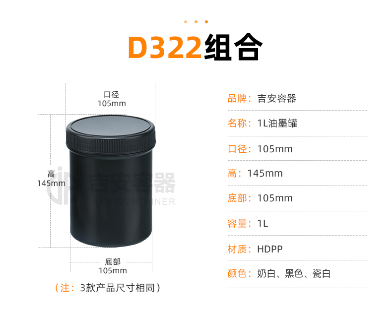 東莞市吉安包裝容器有限公司創(chuàng)立于2000年8月1日,是中國知名品牌企業(yè)。已通過ISO 9001質(zhì)量管理體系資質(zhì)認證,加入了中國中空協(xié)會,并獲得《中國知名品牌》,《國家標準合格產(chǎn)品》,《全國重合同守信用AAA級企業(yè)》,《質(zhì)量.服務(wù).誠信AAA企業(yè)》等榮譽稱號。根據(jù)材質(zhì)的不同,我們的產(chǎn)品分為塑料容器、鐵質(zhì)容器、鋁材容器、玻璃容器、紙質(zhì)容器等五大類。按產(chǎn)品的名稱分為塑料桶、塑料瓶、包裝桶、涂料桶、機油桶、油脂桶、化工罐、膠水瓶、鐵桶、鐵罐、鋁瓶、鋁罐、阻隔瓶、高阻隔瓶等,容量從3ML至1000L多種規(guī)格,多種款式。適合包裝的產(chǎn)品包括:化學試劑、化工原料、化工助劑、飼料添加劑、油墨、油漆、樹脂農(nóng)藥、日用化學品、聚氨脂、膠粘劑,廣泛應(yīng)用于化工、建筑、食品、醫(yī)療、生物等各領(lǐng)域。
