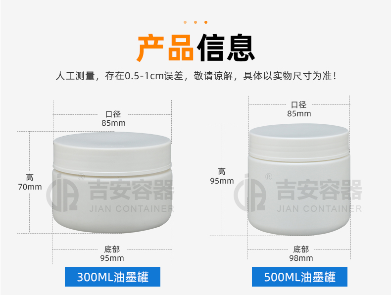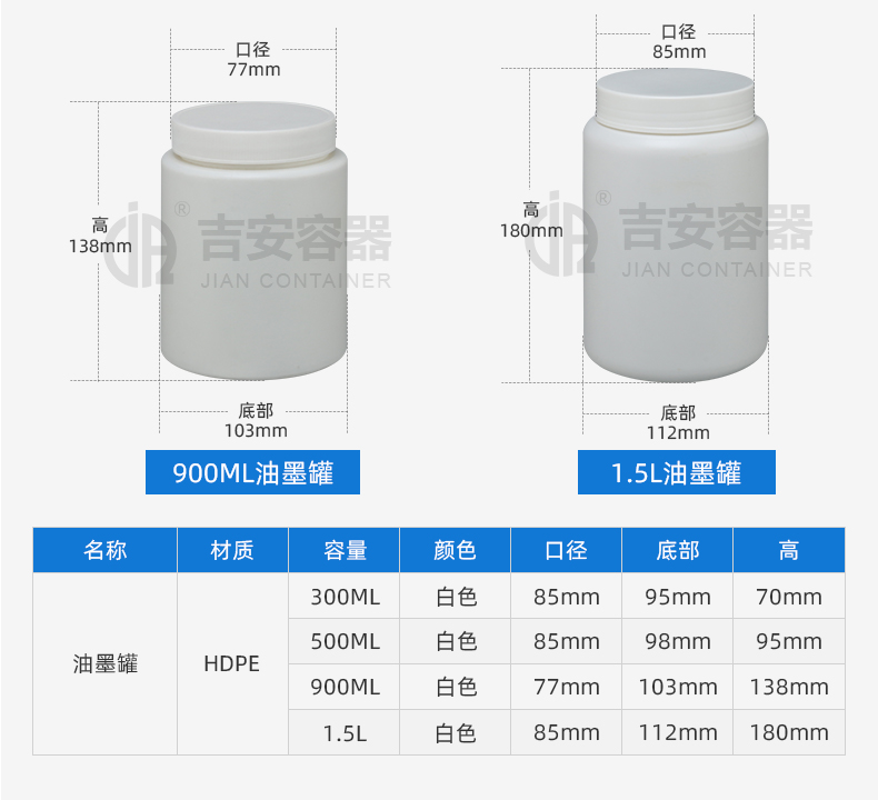 東莞市吉安包裝容器有限公司創(chuàng)立于2000年8月1日,是中國知名品牌企業(yè)。已通過ISO 9001質(zhì)量管理體系資質(zhì)認(rèn)證,加入了中國中空協(xié)會(huì),并獲得《中國知名品牌》,《國家標(biāo)準(zhǔn)合格產(chǎn)品》,《全國重合同守信用AAA級企業(yè)》,《質(zhì)量.服務(wù).誠信AAA企業(yè)》等榮譽(yù)稱號。根據(jù)材質(zhì)的不同,我們的產(chǎn)品分為塑料容器、鐵質(zhì)容器、鋁材容器、玻璃容器、紙質(zhì)容器等五大類。按產(chǎn)品的名稱分為塑料桶、塑料瓶、包裝桶、涂料桶、機(jī)油桶、油脂桶、化工罐、膠水瓶、鐵桶、鐵罐、鋁瓶、鋁罐、阻隔瓶、高阻隔瓶等,容量從3ML至1000L多種規(guī)格,多種款式。適合包裝的產(chǎn)品包括:化學(xué)試劑、化工原料、化工助劑、飼料添加劑、油墨、油漆、樹脂農(nóng)藥、日用化學(xué)品、聚氨脂、膠粘劑,廣泛應(yīng)用于化工、建筑、食品、醫(yī)療、生物等各領(lǐng)域。