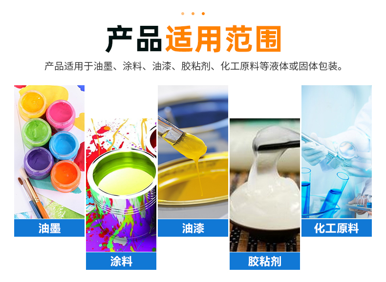 東莞市吉安包裝容器有限公司創(chuàng)立于2000年8月1日,是中國知名品牌企業(yè)。已通過ISO 9001質(zhì)量管理體系資質(zhì)認證,加入了中國中空協(xié)會,并獲得《中國知名品牌》,《國家標準合格產(chǎn)品》,《全國重合同守信用AAA級企業(yè)》,《質(zhì)量.服務(wù).誠信AAA企業(yè)》等榮譽稱號。根據(jù)材質(zhì)的不同,我們的產(chǎn)品分為塑料容器、鐵質(zhì)容器、鋁材容器、玻璃容器、紙質(zhì)容器等五大類。按產(chǎn)品的名稱分為塑料桶、塑料瓶、包裝桶、涂料桶、機油桶、油脂桶、化工罐、膠水瓶、鐵桶、鐵罐、鋁瓶、鋁罐、阻隔瓶、高阻隔瓶等,容量從3ML至1000L多種規(guī)格,多種款式。適合包裝的產(chǎn)品包括:化學(xué)試劑、化工原料、化工助劑、飼料添加劑、油墨、油漆、樹脂農(nóng)藥、日用化學(xué)品、聚氨脂、膠粘劑,廣泛應(yīng)用于化工、建筑、食品、醫(yī)療、生物等各領(lǐng)域。
