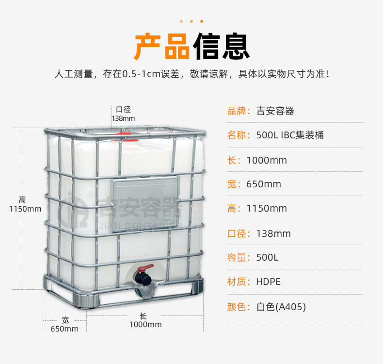 | 容量:500L | 材質(zhì):內(nèi)膽-HDPE,外框-鍍鋅鋼 |